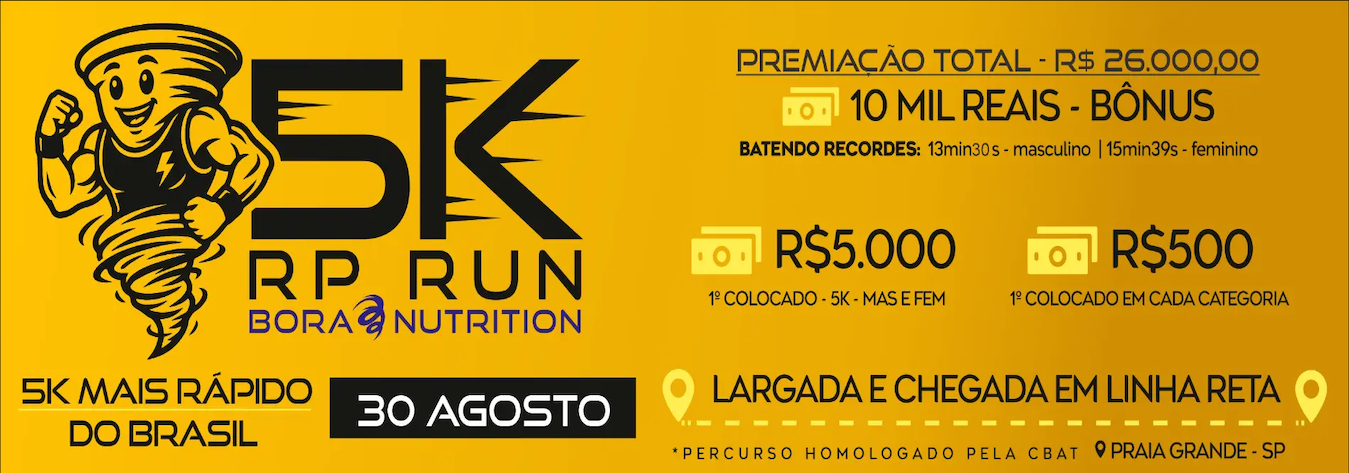 Corrida 5km (Público Geral e Elite): R$ 129,00 + Taxa de serviço.